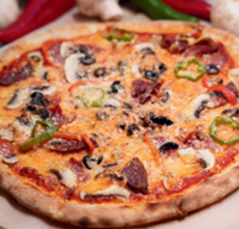 Special Pizza Domates Sos, Mozerella, Dana sucuk, Mantar, Mısır, Yeşil Biber, Parmesan, Kekik